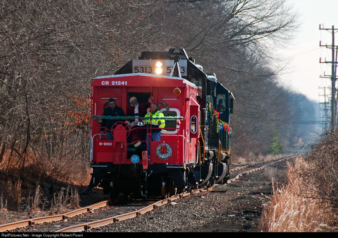 | The Browns Yard Santa Train is headed for Freehold with a special guest aboard caboose 21241. This train is jointly sponsored by Conrail and the Freehold PBA, and it will draw quite an impressive crowd on this very cold late autumn day. |