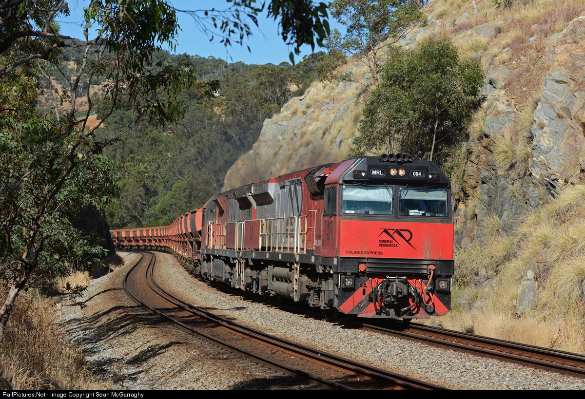 A relatively clean MRL004 & MRL006 (in comparison to some of the other downright filthy MRL class locos) work 6030 loaded Polaris ore from Mt Walton through the no.1 cutting at Brigadoon en route to Kwinana to unload.
