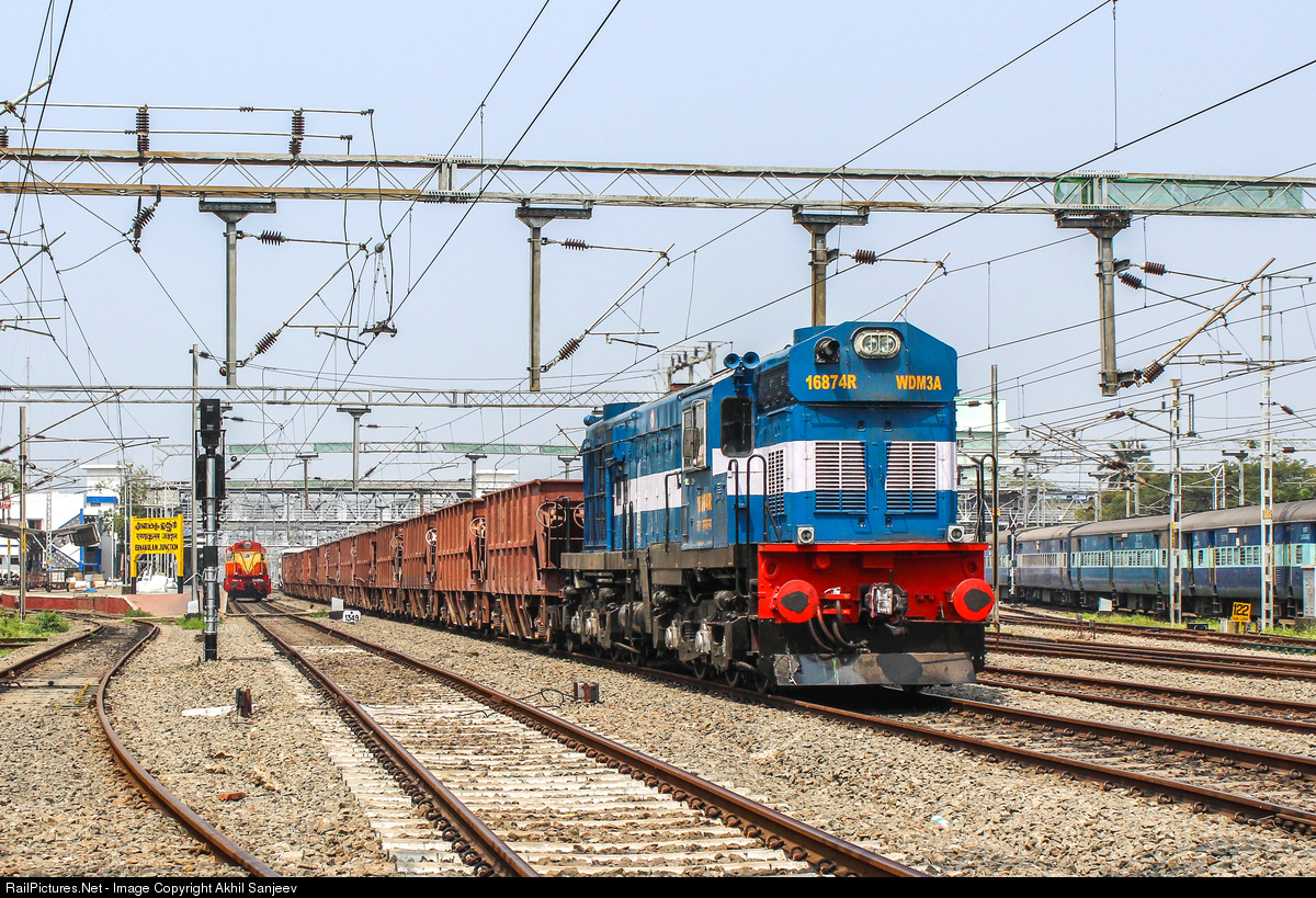 A rebuilt WDM 3A class locomotive homed at Ernakulam,leads a BOXN consist towards CHTS