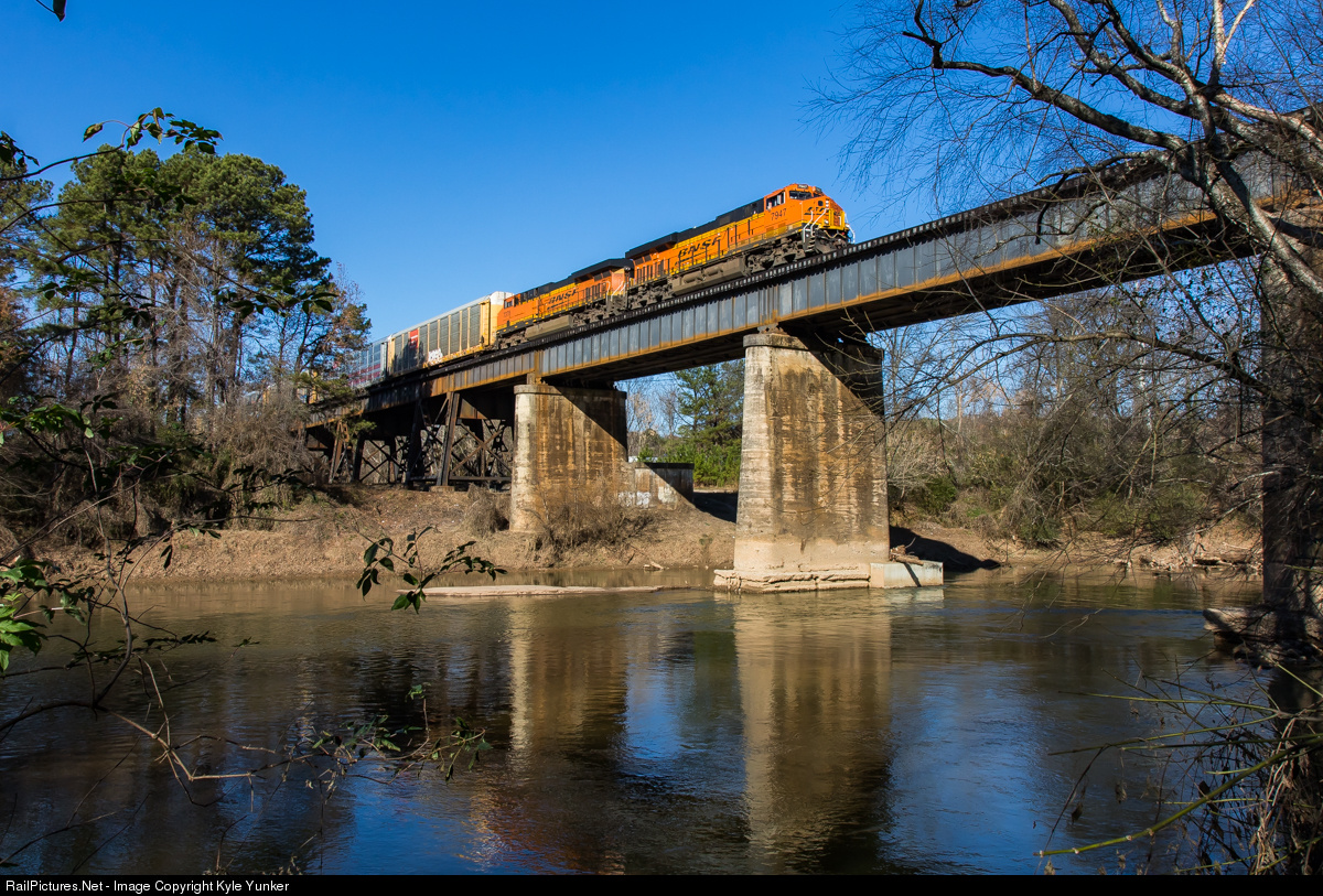 NS #290 crosses the Chattahoochee River behind a pair of BNSF GE's.