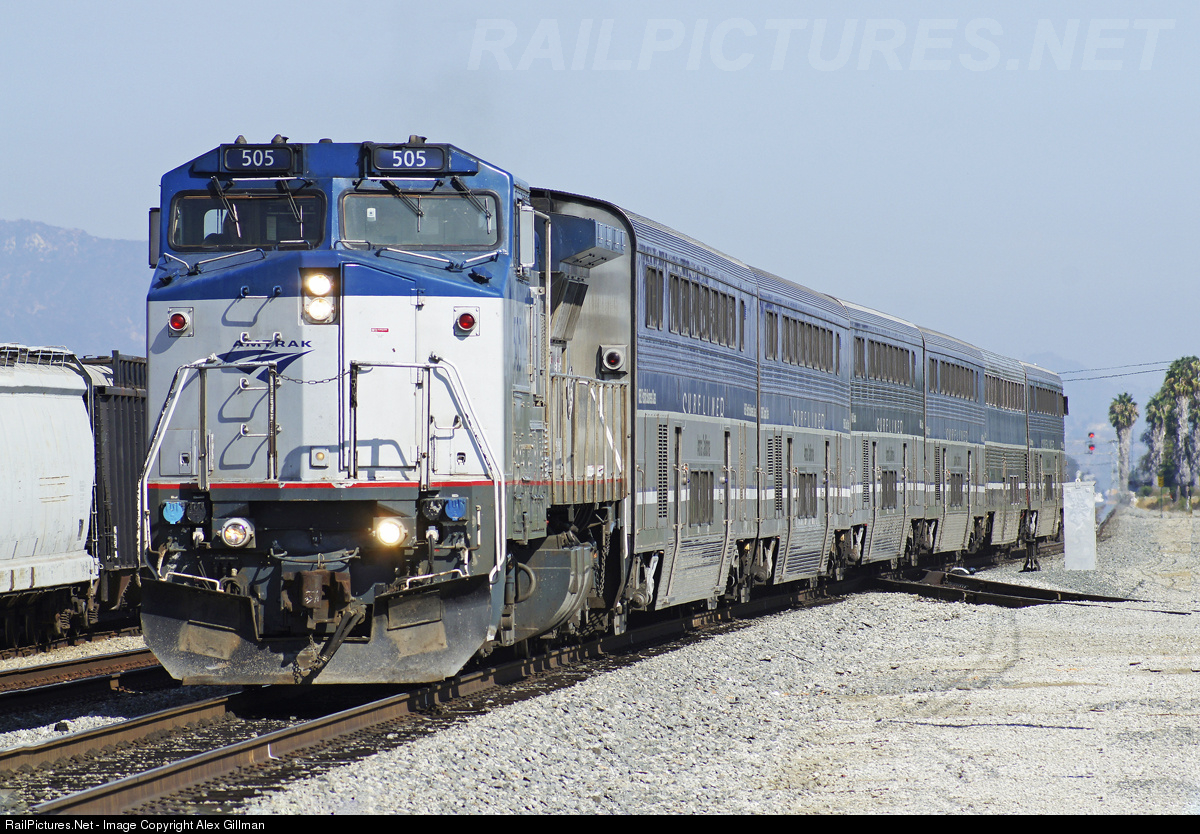 | After getting word that a Dash-8 was heading north shoving on the rear of Amtrak 777 from San Diego to Los Angeles, I made it a point on this afternoon to get out somewhere to see if it stayed on for the trip up to San Luis Obispo. Luck was on my side as AMTK 505 found itself still on the point after departing Los Angeles as it rolled into Van Nuys about 30 minutes later. |