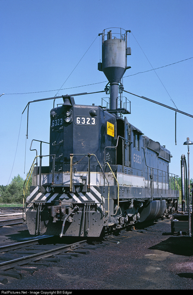 | PNCX 6323, a former Southern Railway SD24 is parked at Altoona, WI on CNW for fueling and sand. CNW leased a batch of these units in 1979 and later bought some of them converting them to SD18s (de-turbo charged). |