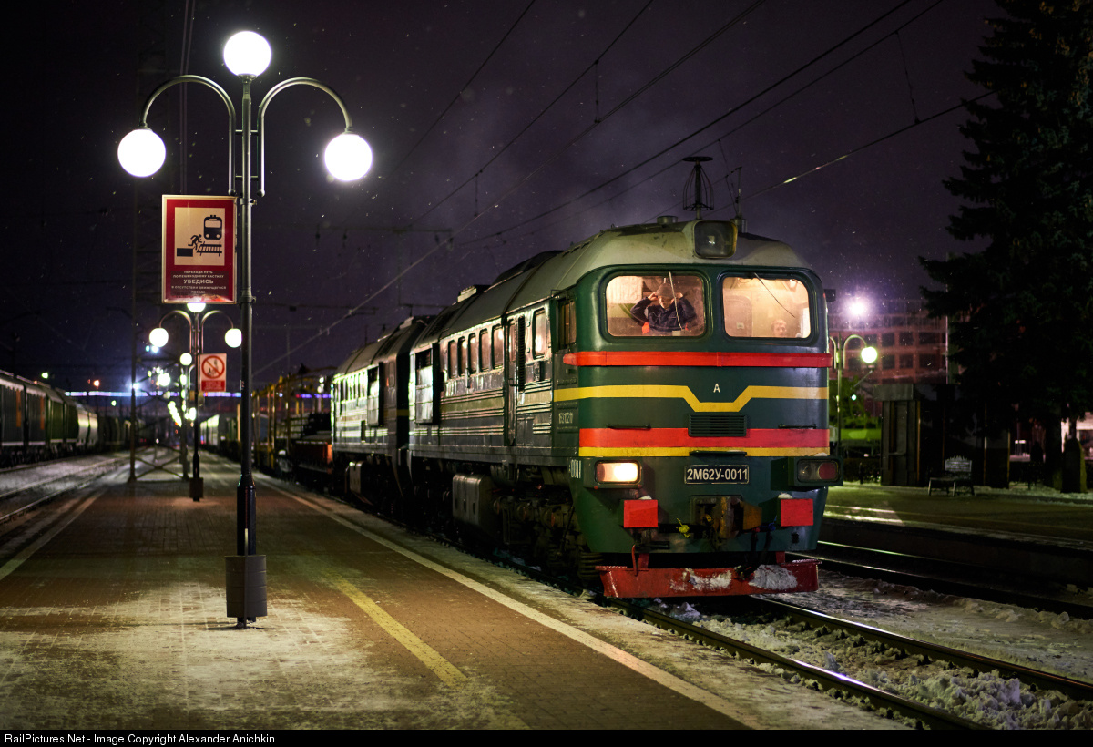 Diesel locomotive 2M62U-011 staunts at Tula-1 rail terminal