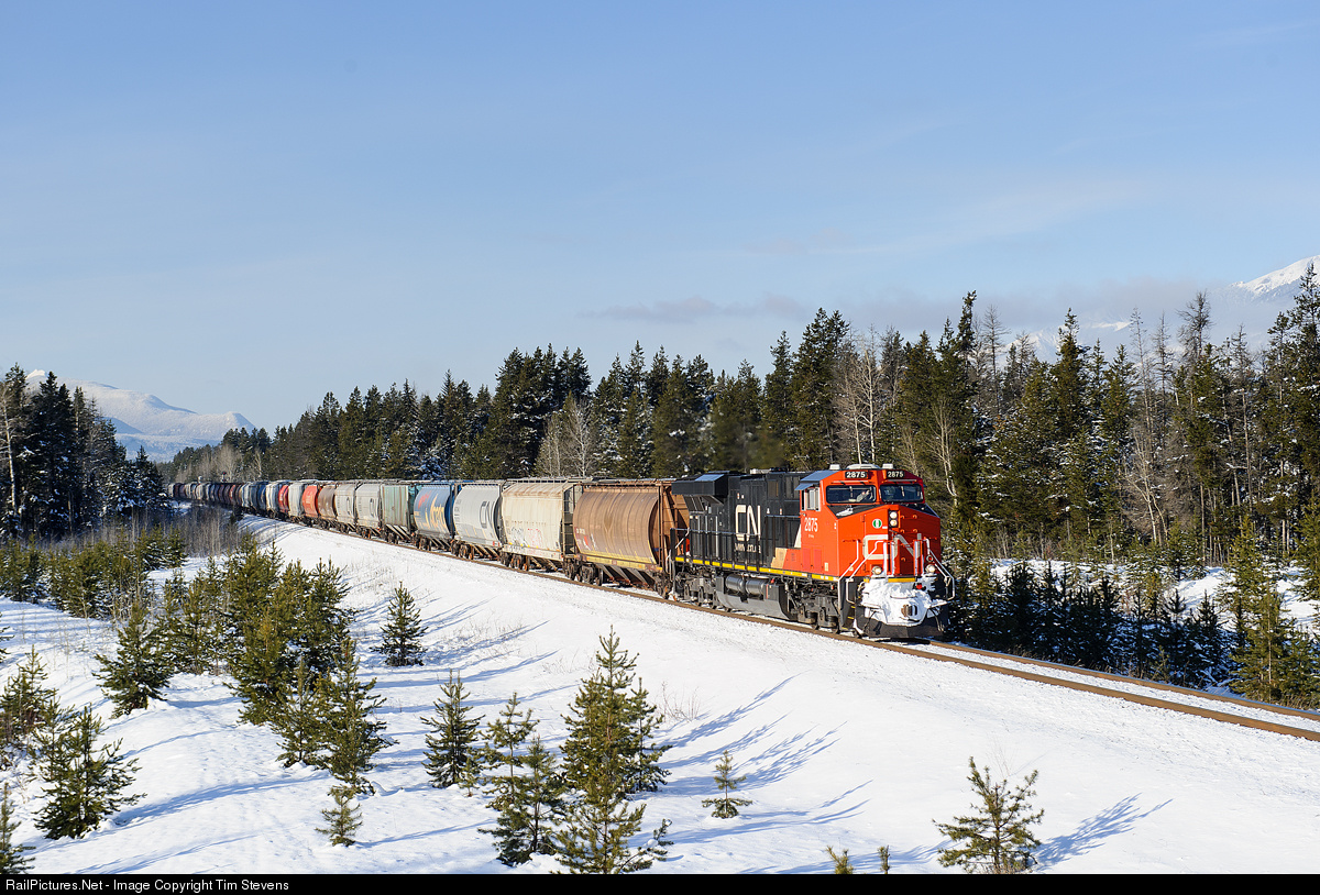 CN ES44AC 2875 leads 96 grain empties away from Peterson on the Robson Sub.