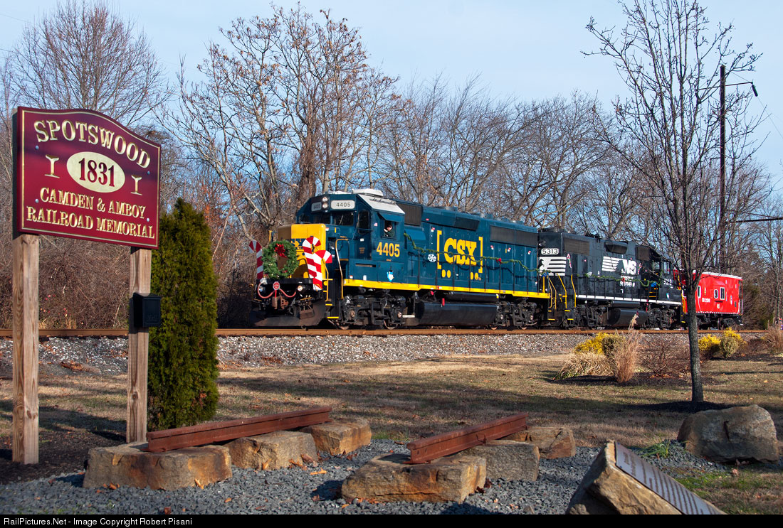 Conrail's Browns Yard Santa Train is seen passing the historic Camden & Amboy marker in Spotswood. The Camden & Amboy Railroad was the first to operate in the state of New Jersey, reaching Spotswood in 1831. It's mainline diagonally crossed the state, indirectly connecting the cities of New York and Philadelphia. The C&A was eventually acquired by the Pennsylvania Railroad, which would construct its iconic four-track Philadelphia to New York Main Line parallel that of the original C&A. Portions of the original Camden & Amboy remained in service, and this particular segment is still in service today, operating as Conrail's Amboy Secondary...185 years later. In recognition of the line's historic significance, the town of Spotswood erected an historic marker and a segment of track anchored to a set of original stone sleepers.