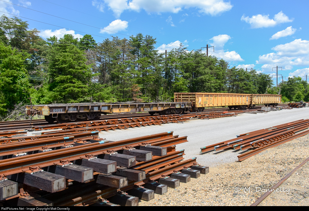 Folks don't usually think of freight cars when they hear the name Amtrak, but Amtrak maintains a rather extensive fleet of freight cars to maintain its owned and leased portions of right of way. This particular flat car is a former US Army car, with hints of DODX and United States lettering still visible.