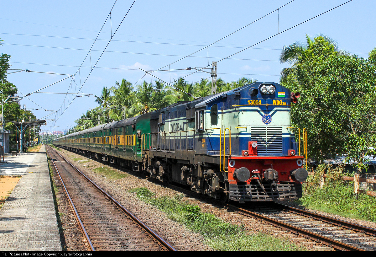 KRISHNARAJAPURAM WDG-3A powering Yesvantpur - Kochuveli Garib Rath Express about to enter its final destination