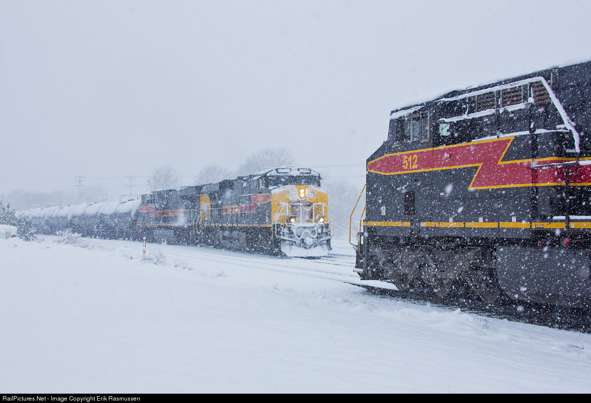 | IAIS 512 sits on the main with BICB while IAIS 506 brings CBBI into Silvis Yard during the first snow storm of the season. Once stopped in the yard, CBBI's crew will depart Silvis on BICB. |