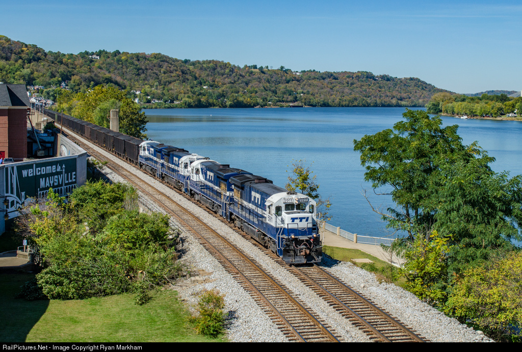 After running around their train, TTI loads ease through the river town of Maysville. In November, CSX (the parent company) announced that the transflow facility would be shut down due to lack of business. Immediately afterwards, the line from Paris to Maysville was taken out of service.