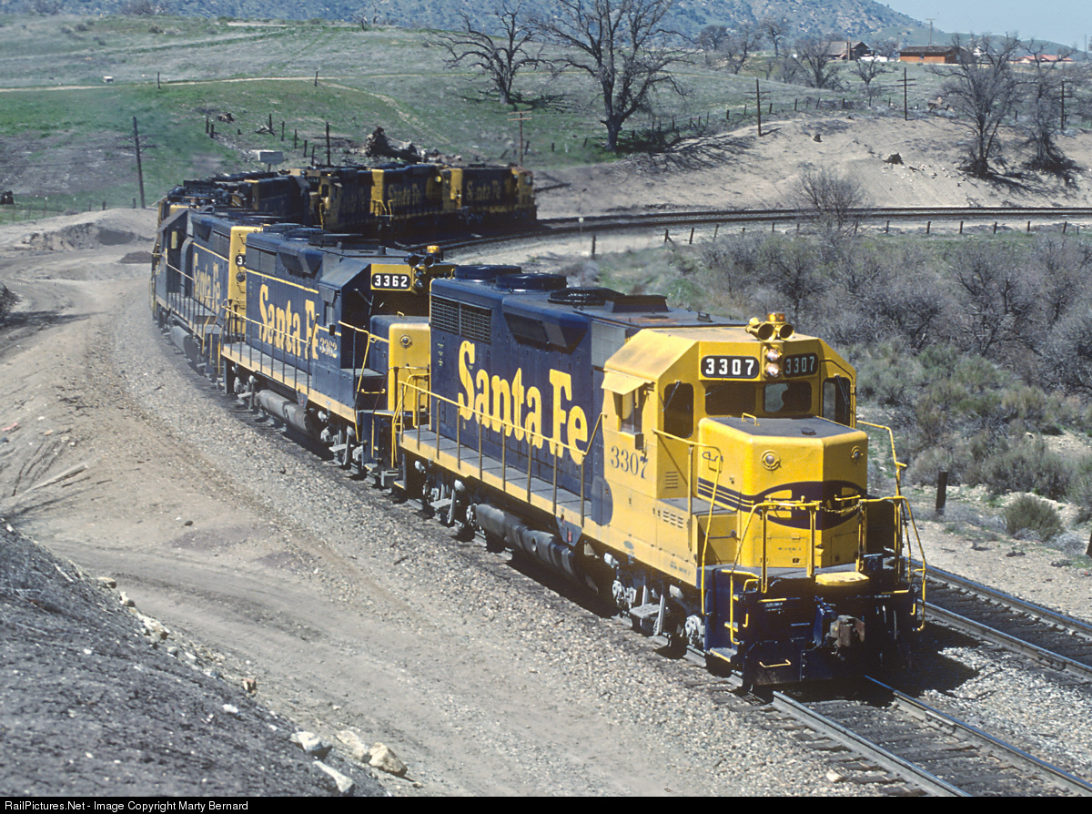 RailPictures.Net Photo: ATSF 3307 Atchison, Topeka & Santa Fe (ATSF) EMD GP35 at Just east of Cable, California by Marty Bernard