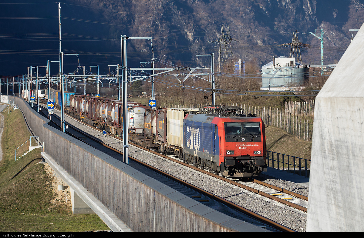 Re 474 # 018 of SBB Cargo with southbound Hupac intermodal train 40137 from Rotterdam Waalhavn to Gallarate on the Gotthard Base Tunnel line bypassing Biasca.