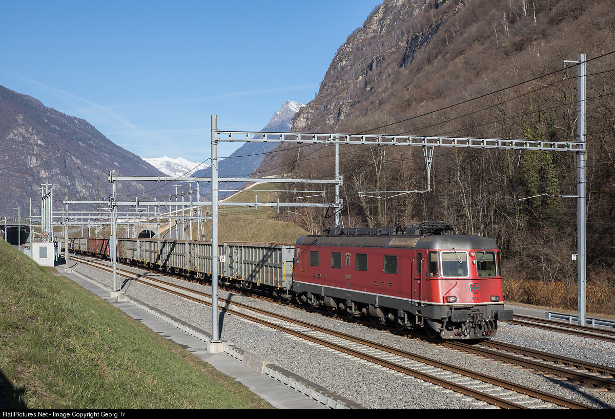 | Re 6/6 # 11629 "Interlaken" with train 49025 from Swiss Steel Emmenbrücke to Lecco in Giustizia, 3 km south of Biasca. |