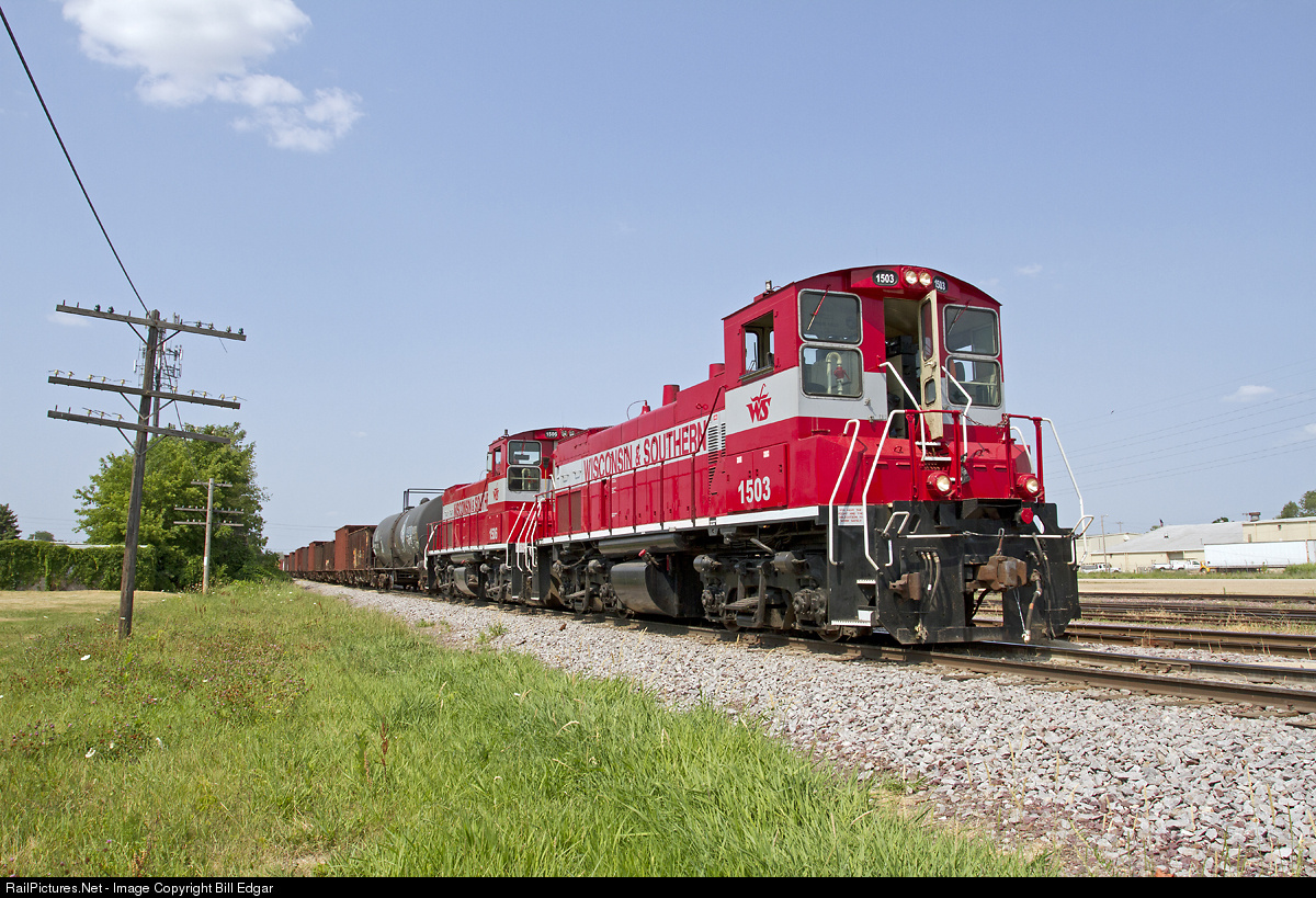 A pair of Wisconsin & Southern MP15ACs work the former C&NW yard at Madison, WI on the 4th of July, 2012. Built in September 1975, no. 1503 is former MILW 476, among the last new power acquired by Milwaukee Road prior to the 1980 bankruptcy driven cut back in service. MILW also once served Madison.