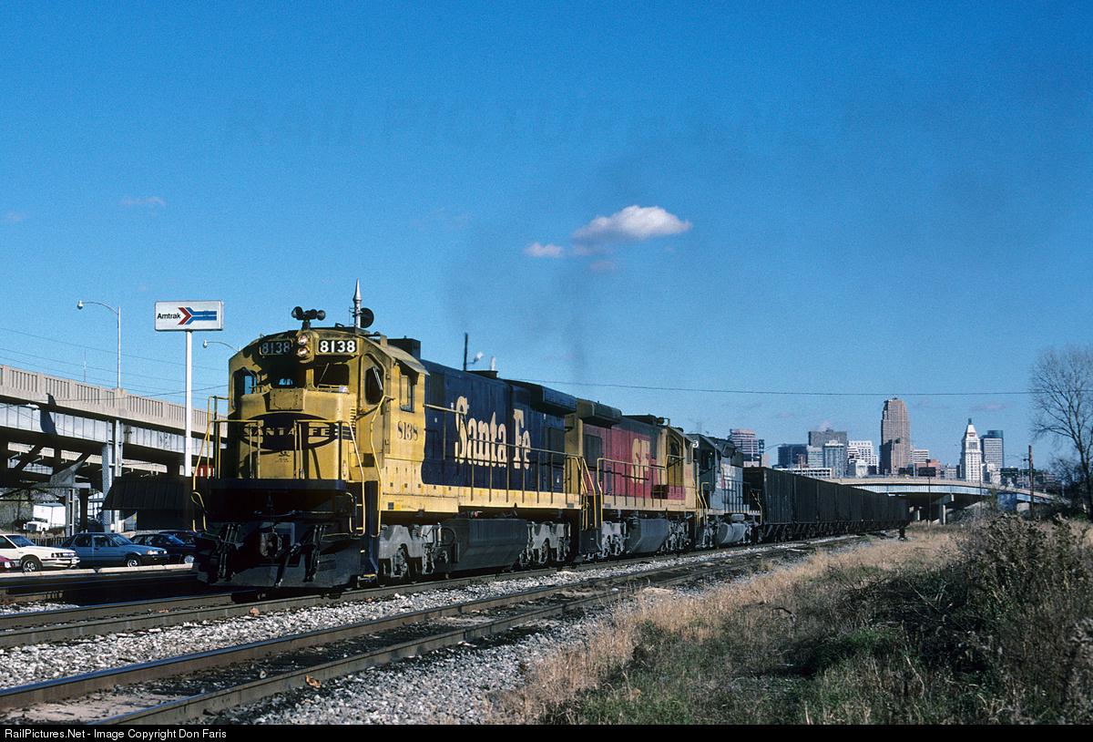 Peoria bound 'Santa Fe' coal departing Cincy. The train turn north onto the former C&EI at Vincennes, IN. At Watseka, IL it will be turned over to the TP&W for the rest of the trip.