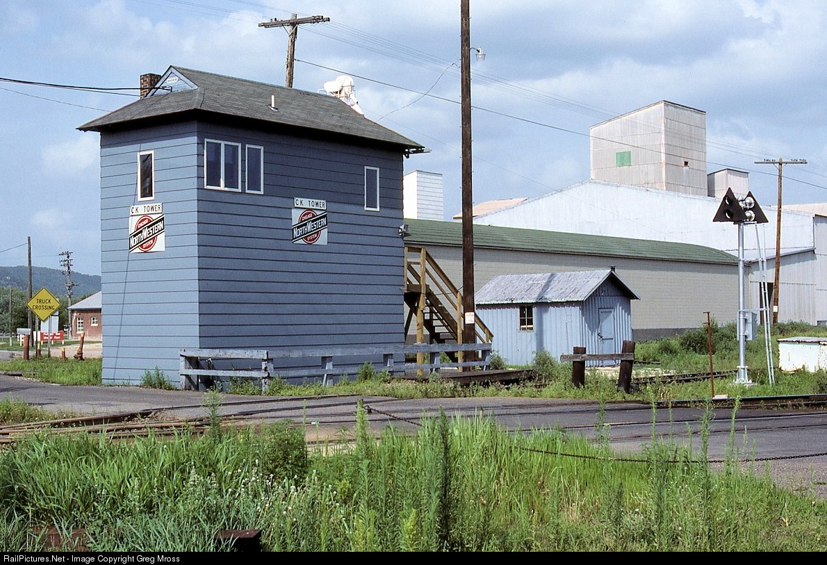 CNW's CK Tower in Winona, MN in July of 1987. This tower guarded the CNW/MILW crossing and was taken out of service in 1989. It was torn down soon thereafter.