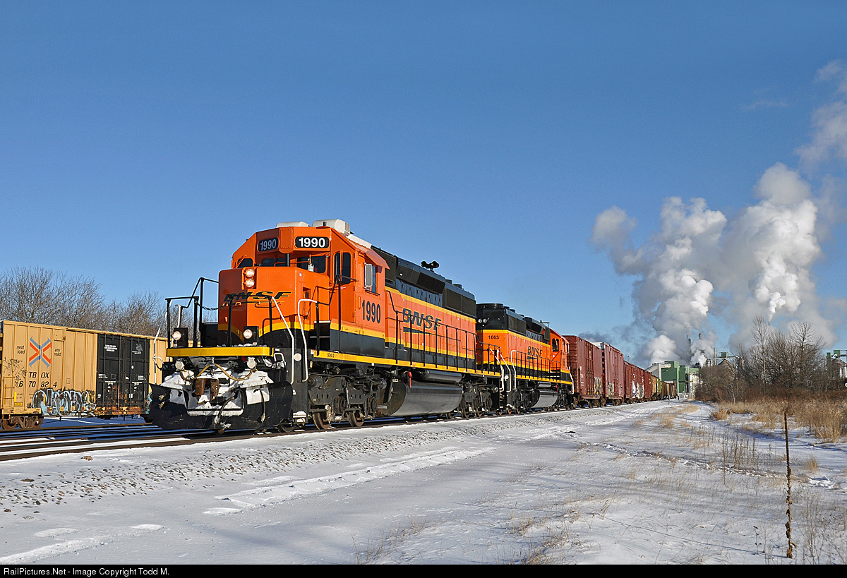 RailPictures.Net Photo: BNSF 1990 Burlington Northern Santa Fe EMD SD40-2 at Cloquet, Minnesota by Todd M.
