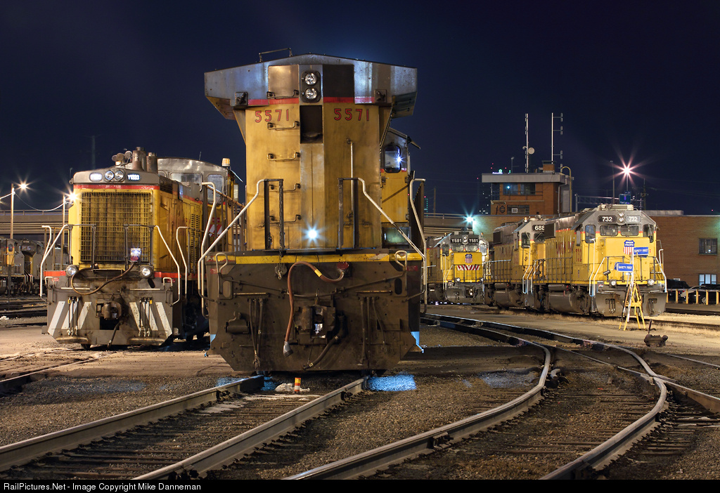 Locomotives gather on the fuel tracks at Union Pacific’s former Rio Grande North Yard at Denver, Colorado, on December 22, 2012. The yard tower is visible above the locomotive on the right.