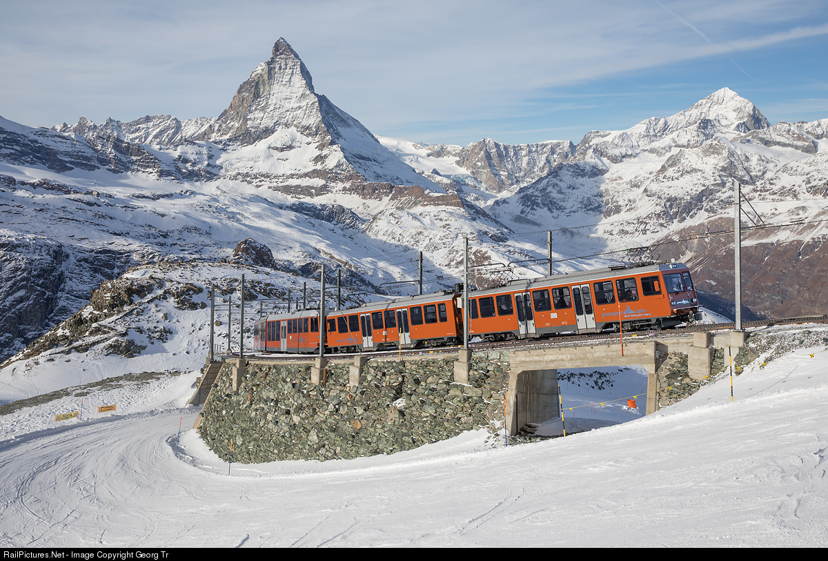 RailPictures.Net Photo: 3053, 3083 GGB - Gornergratbahn Bhe 4/8, Bhe 4/6 at Gornergrat, Switzerland by Georg Trüb