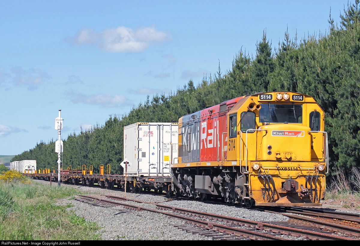 Trains on 3' 6" (1.067m) track from Whangarei to Bluff with virtually heritage rebuilt EMD and GE locomotives still the mainstay power. The network was privatized in 1990's and operated by Toll until 2008 when state owned KiwiRail was established.