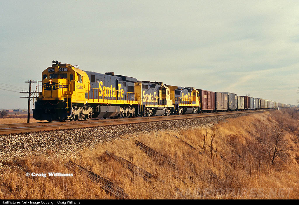 I remember the Santa Fe use to run a fairly hot auto train mid-morning on the Chillicothe Sub to Oklahoma. Here the McCook, IL, to Oklahoma City, OK, auto train has a "9" symbol, making it hotter today. This train probably had shutdown cars for the plant in OKC? Too bad the power didn't look like it was a priority, which was good for me! Seen just west of Edelstein. Scanned Slide from 12-03-95