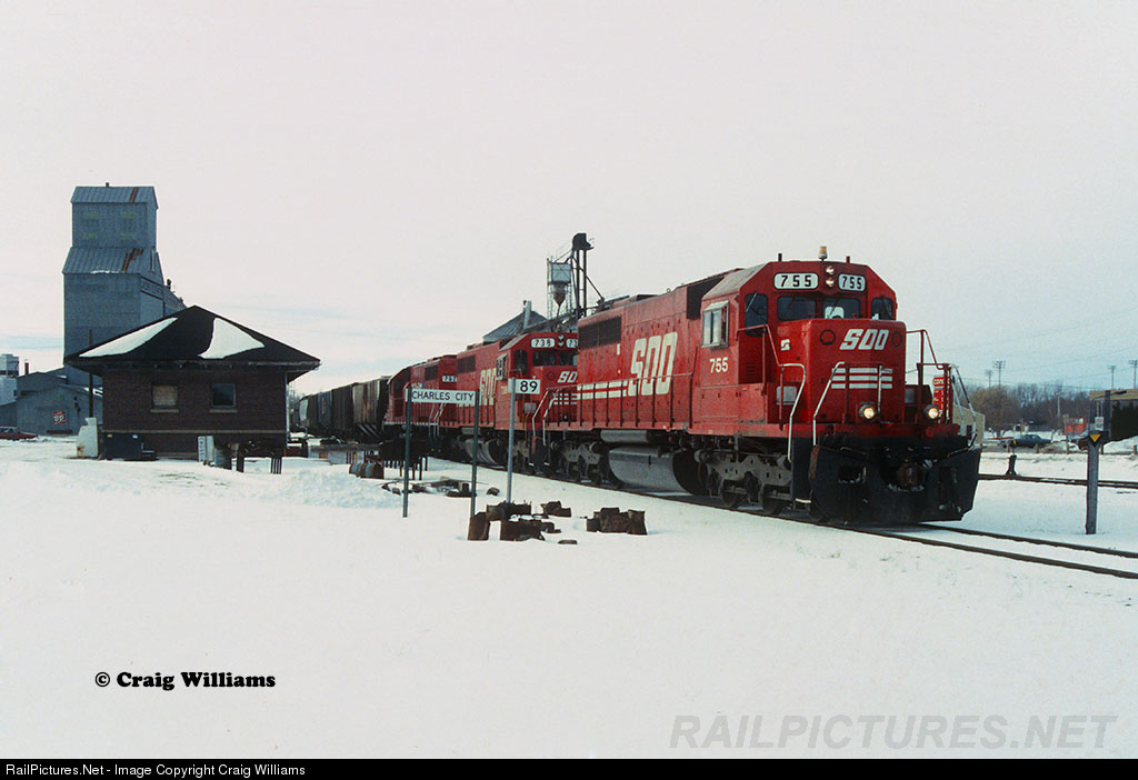 Here Soo Line train 178 rolls thru Charles City with Soo 755, Soo 738, and CP 762. The train is working between Mason City and Marquette in northern Iowa. The leader 755 was built for the Soo in 1971 and was scrapped by the CP in May 2005. The other 2 Soo units maybe still on the CP roster in 2016??