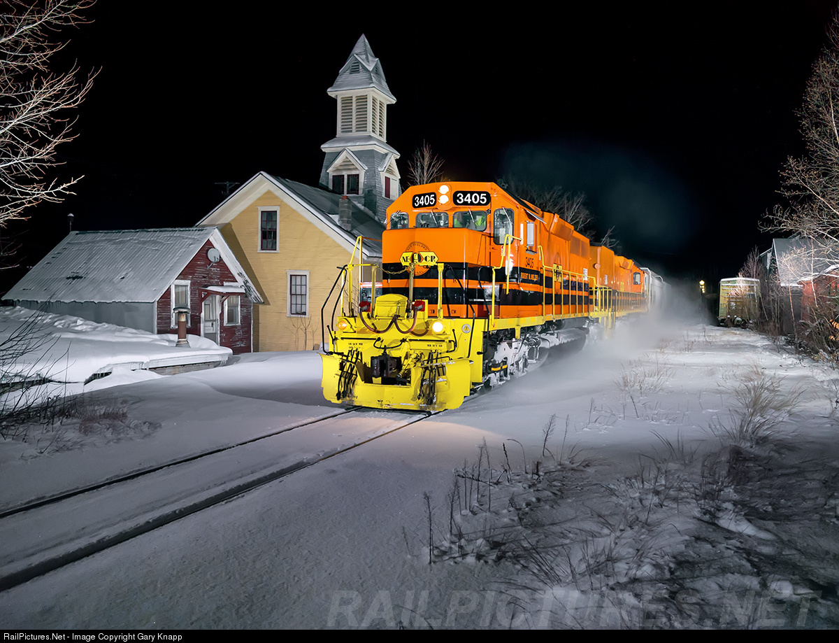 A fitting location for 2016s "last shot"! NECR 323 passes classic New England architecture from another era in downtown Randolph dragging a snowstorm along with the consist behind the power at 01:51. A recent storm dropped a foot or more of powder to complete a christmas card scene.