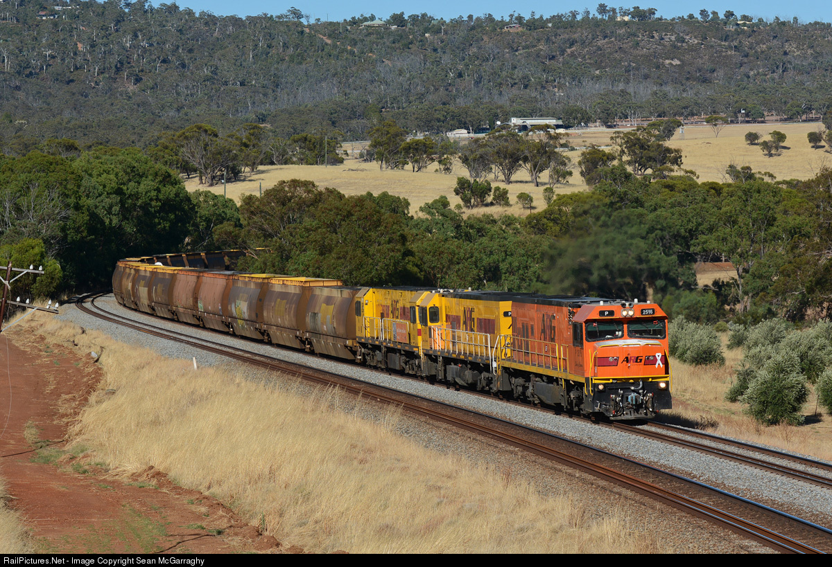 | Having spent the Christmas period in Perth for servicing and a run through the Railbam detector, the XOA/XO woodchip fleet is seen returning to Albany behind new Albany based locos P2516, P2510 & PA2819 as 2305 crawling through a track speed restriction just east of Toodyay. |