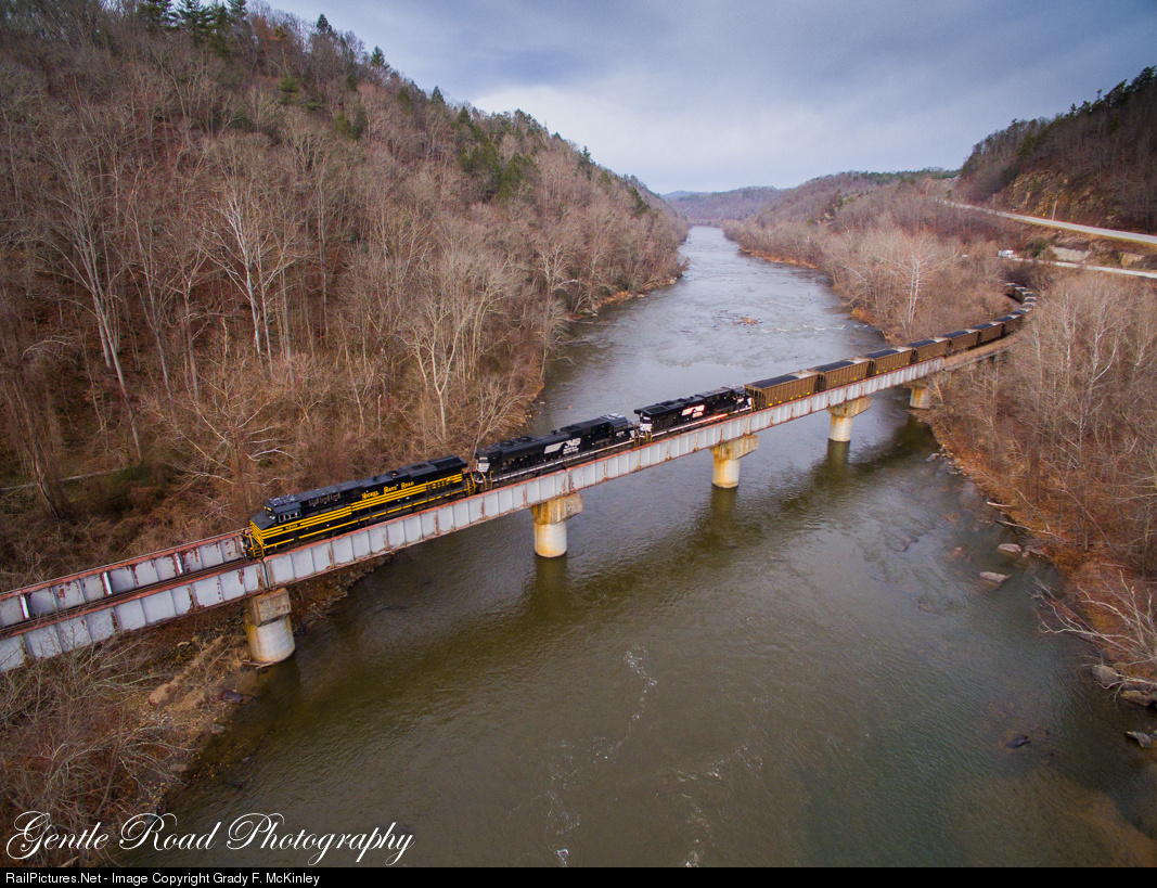 | The Nickel Plate Heritage unit leads eastbound coal loads for Duke Energy's Skyland powerplant south of Asheville, NC. Once the train arrives in Asheville a Blue Ridge Southern crew will jump on an take the train to Skyland. |