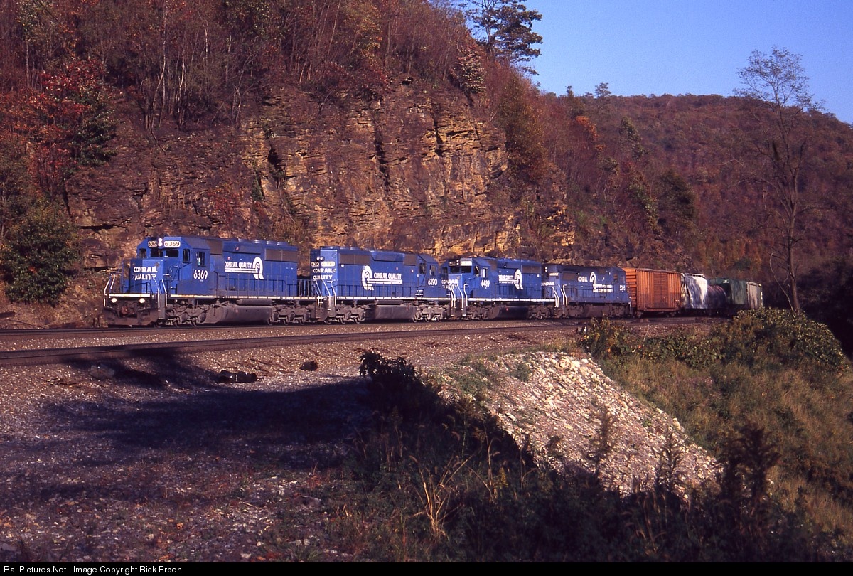 A pair of snappers are coupled ahead of the road power on symbol LMPI as the manifest negotiates Allegrippus curve on the side of the mountain between MG and Bennington. LMPI was a Linden/Metuchen to Conway symbol that also carried a lengthy block of auto parts cars - many of them hi-cube box cars with those road names of yore such as DT&I, D&TS, L&N, MILW, C&NW, N&W, B&O, et al.
