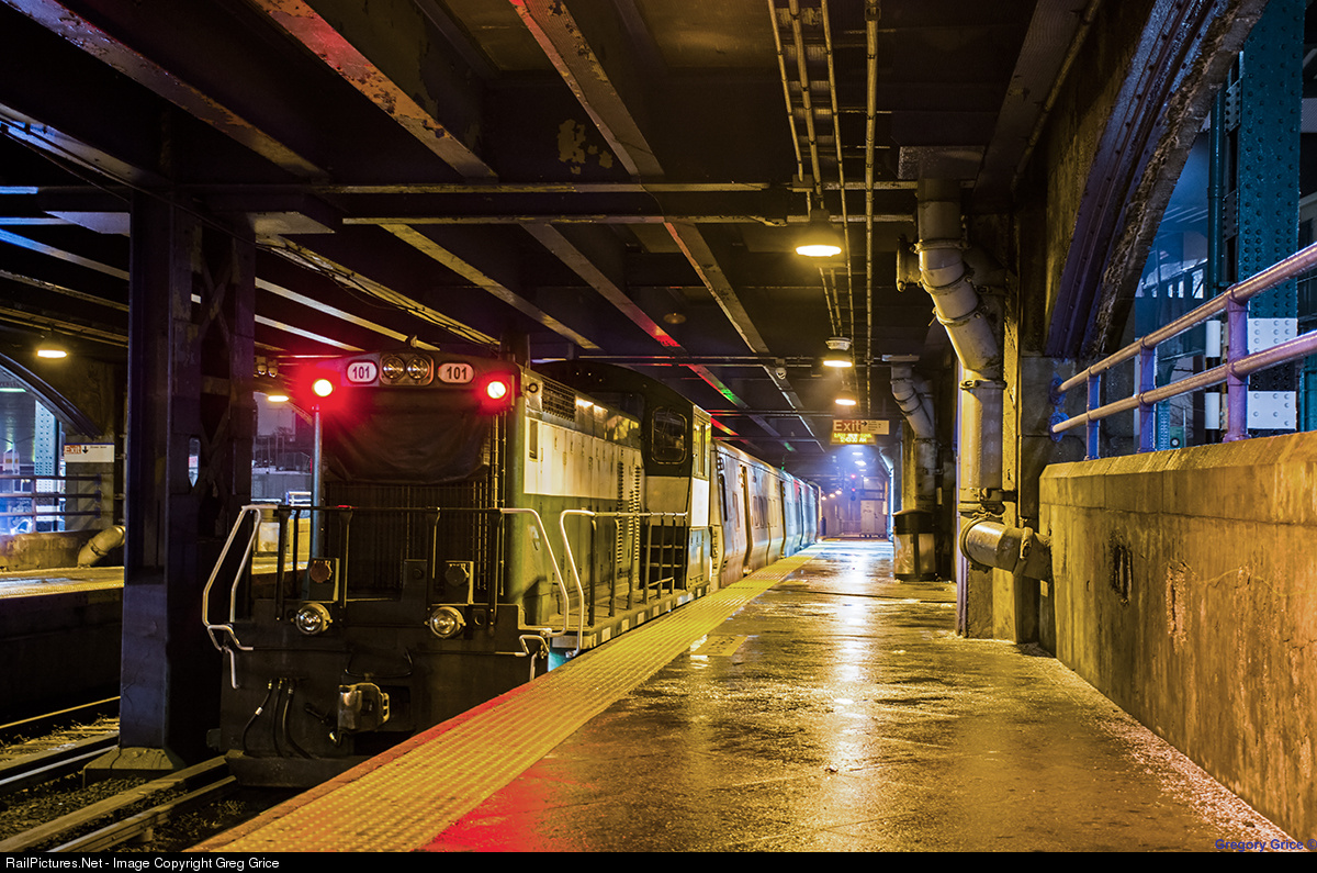 "Long Island Wreck Extra at East New York" LIRR Wreck Extra 100 awaits the signal at East New York on the Atlantic Branch on it's way to Hillside Yard. Wreck Exta 100 is tasked with transporting the damaged M7 pair (7553/7554) of the train that ran into the bumper block a week prior with a SW1001 on either end. This is the first time diesels have traversed the Atlantic Branch in over a decade.