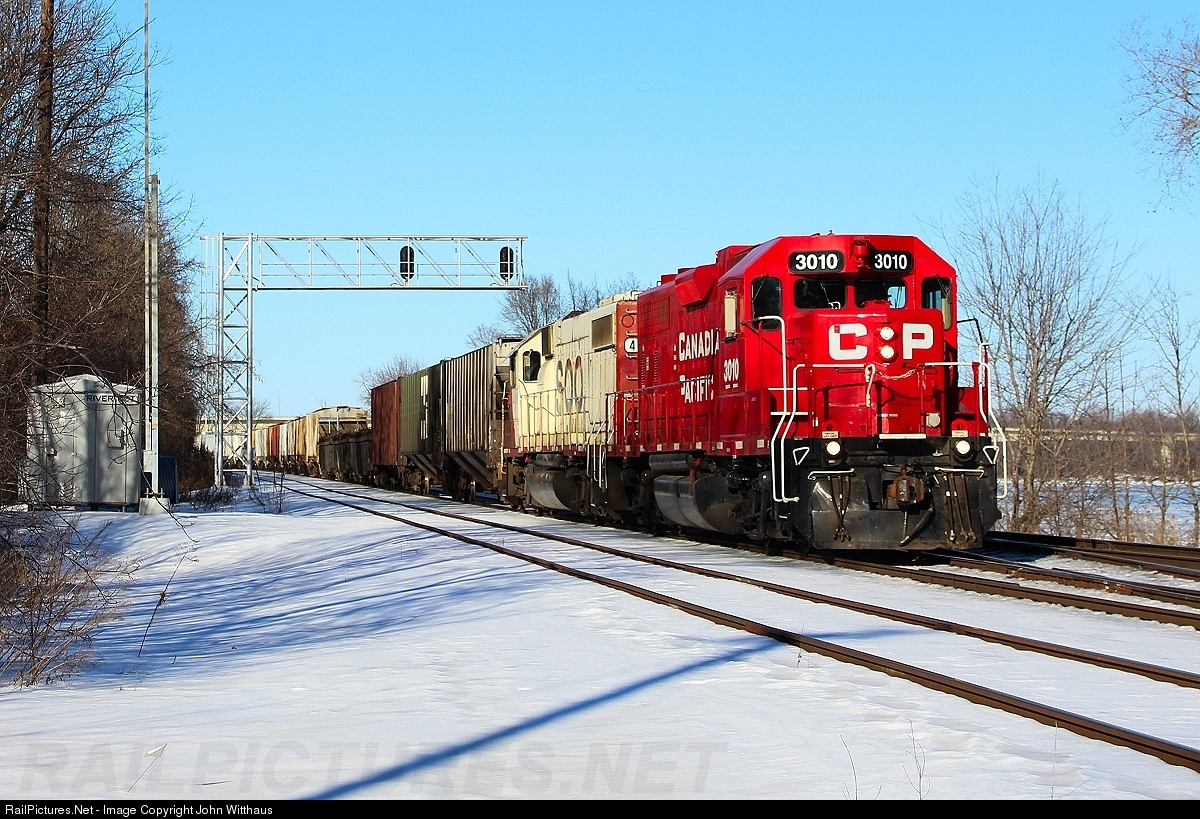 Severely Crippled: A very injured H20 limps into River Jct, next to the mighty Mississippi, on a cold December afternoon. The SOO geep is dead and drained, and the CP geep is minus a traction motor, at about 7K tons, the engineer said he was making about 2 mph for 8 miles. Fun times... Taken while off duty, wearing full PPE.