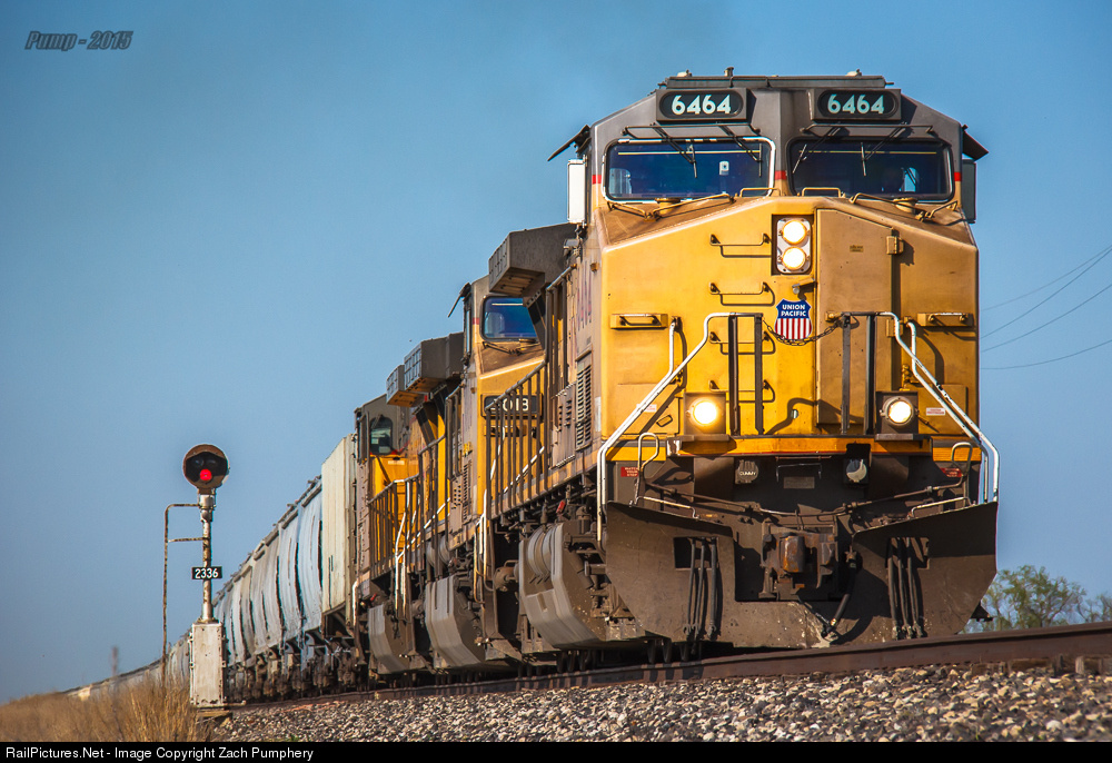 A former Rock Island US&S TP-5 signal is passed by UP Train GMMS6P 28 at MP 233.6 on the UP Herington Sub. This is part of the former Rock Island "Golden State Route", which was owned for 16 years by the St. Louis Southwestern Railway, an SP Subsidiary, better known as the Cotton Belt. Another common name for this line was the "Cotton Rock", a corollary of the subsequent ownership after the CRI&P.