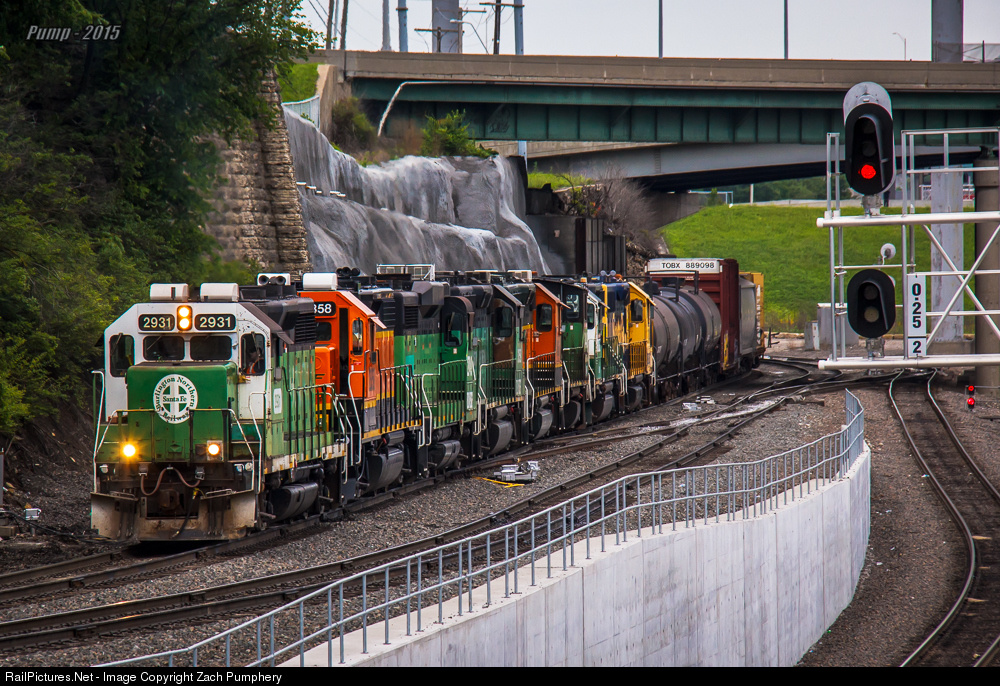 It's four axle mania! BNSF Train L NEB6911 29I, the Spring Hill Local is returning to BNSF Murray Yard at The Gooseneck with a ton of Geeps, and even a switch engine. Included in this consist are in order: One of the few green "Pill" patched units, a fresh orange GP38-2, a green nose striped GP30 body, a green GP50L, an orange GP50L, a green SW1500, a whiteface green GP50, and a Yellowbonnet GP39-2.