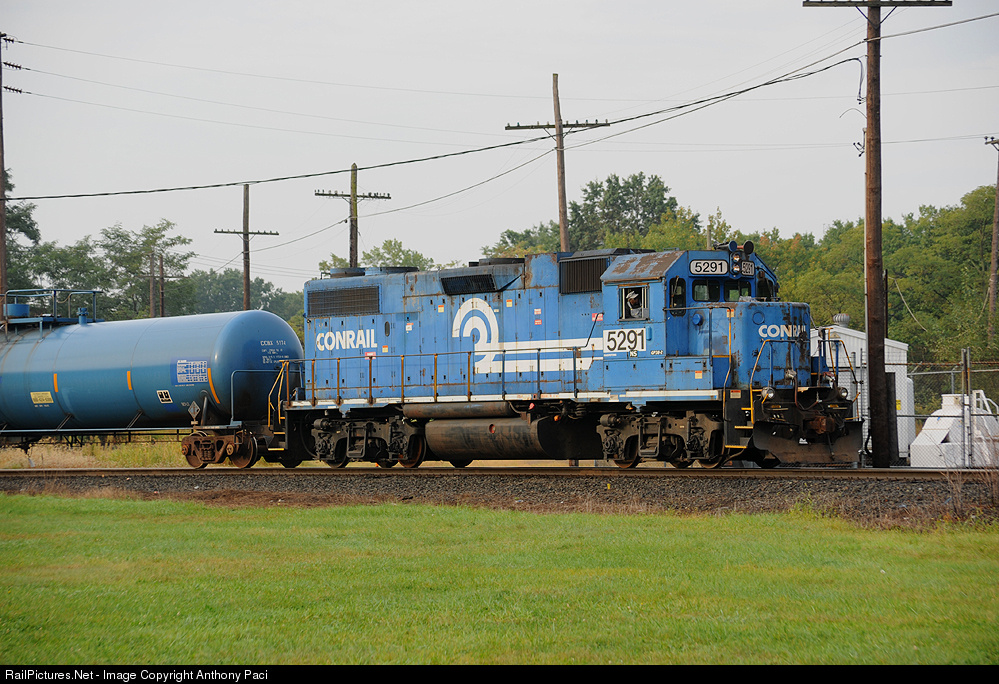 | Still wearing Conrail blue at the time this photo was taken, this ex-Penn Central GP38-2 switches cars at the Conrail Shared Assets Operations Port Reading Yard. Some Penn Central markings and paint were visible in this particular motor. |