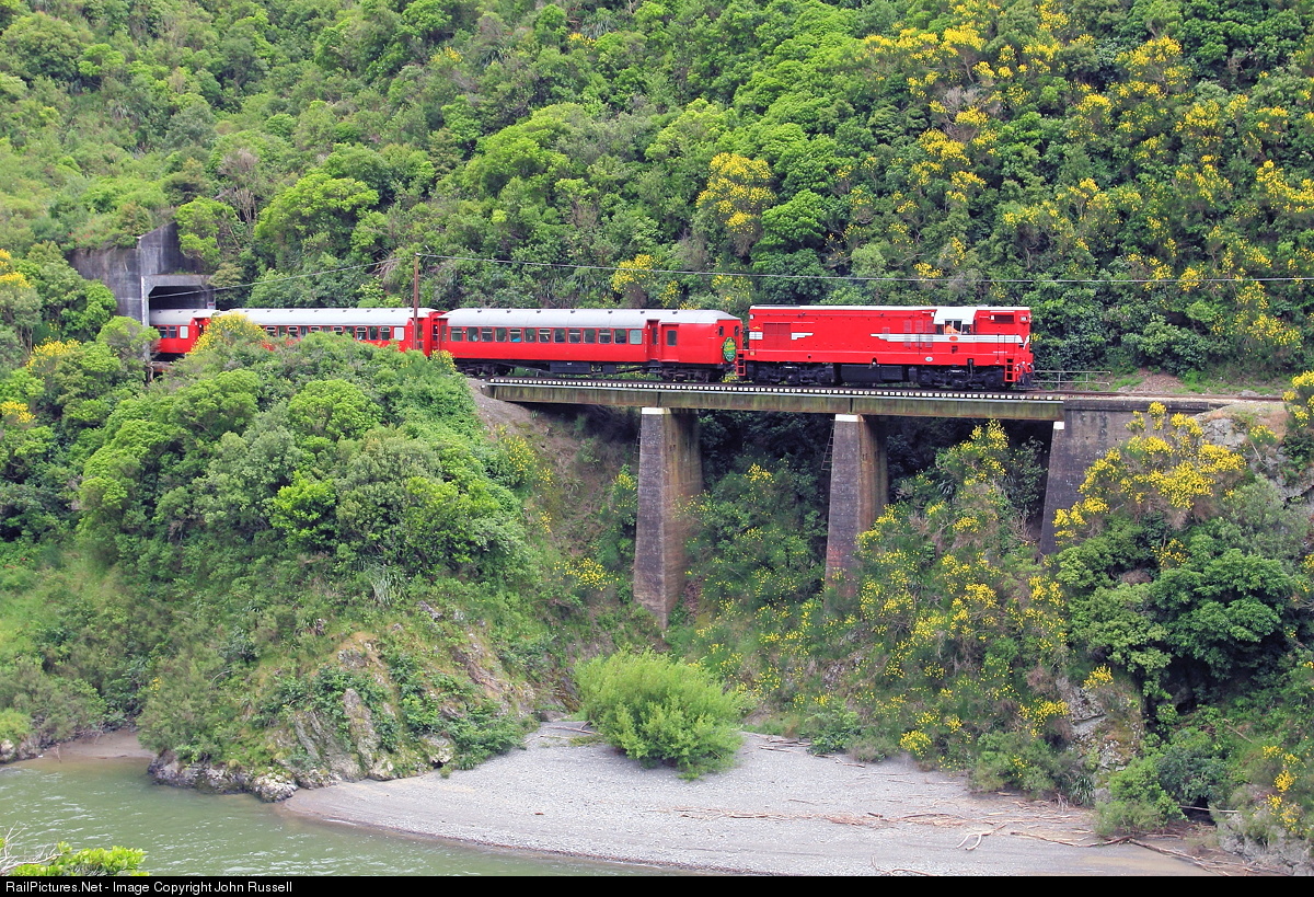 1431 was built by Clyde Engineering in NSW in 1957 for NZ Railways. It was sold to Steam Incorporated in 1988 and, after restoration, returned to mainline service in 2009. Working a Grand Circle excursion via Levin to Palmerston North and back to Wellington via Wairarapa Line, it is seen crossing a bridge between tunnels in the Manawatu Gorge.
