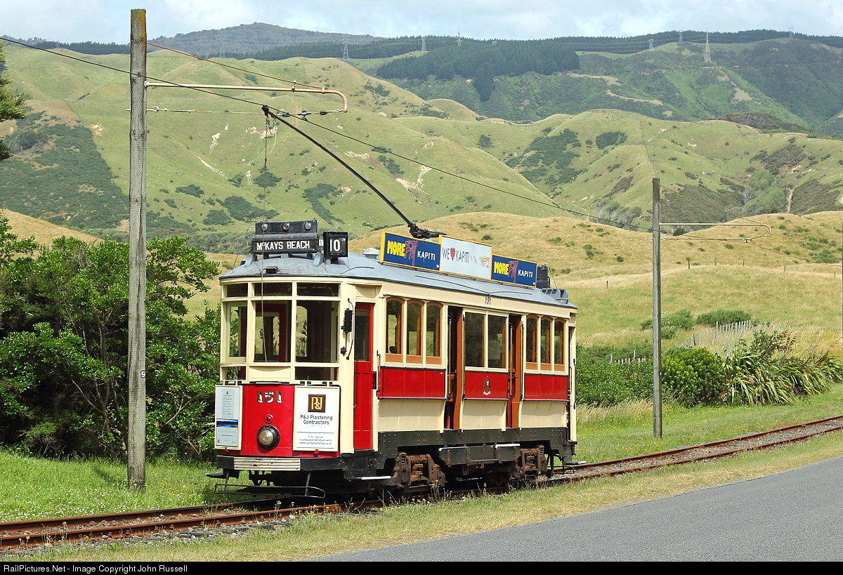 | The Wellington Tramway Museum is located at Queen Elizabeth Park in New Zealand, near the overbridge at McKay's Crossing between Paekakariki and Paraparaumu. Trams have been in operation on a line through the park since 1965. 151 is a double saloon type tram car built in 1923 by Wellington City Council workshops. It was retired between 1960 and 1963. |
