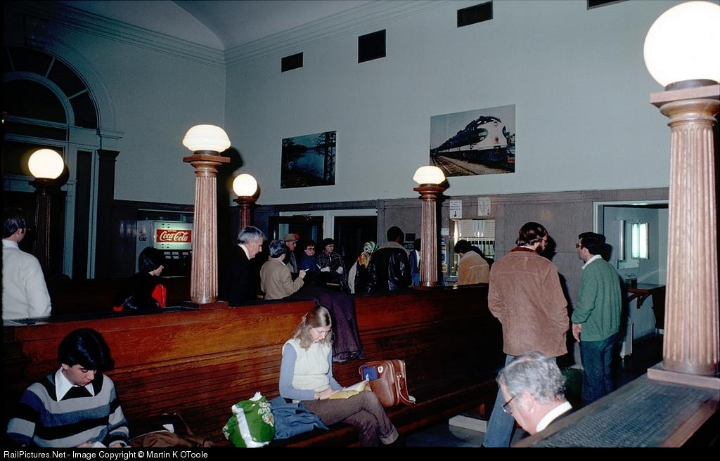Train time in the waiting room. Southern photos adorn the walls but Amtrak will have the run in two weeks. Honeywell Pentax H1a; Kodachrome