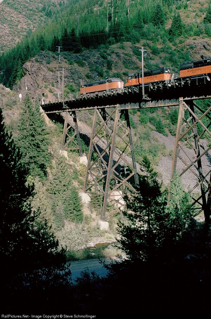 RailPictures.Net Photo: Milwaukee Road GE EF-4 at Steel Bridge, Idaho by Steve Schmollinger