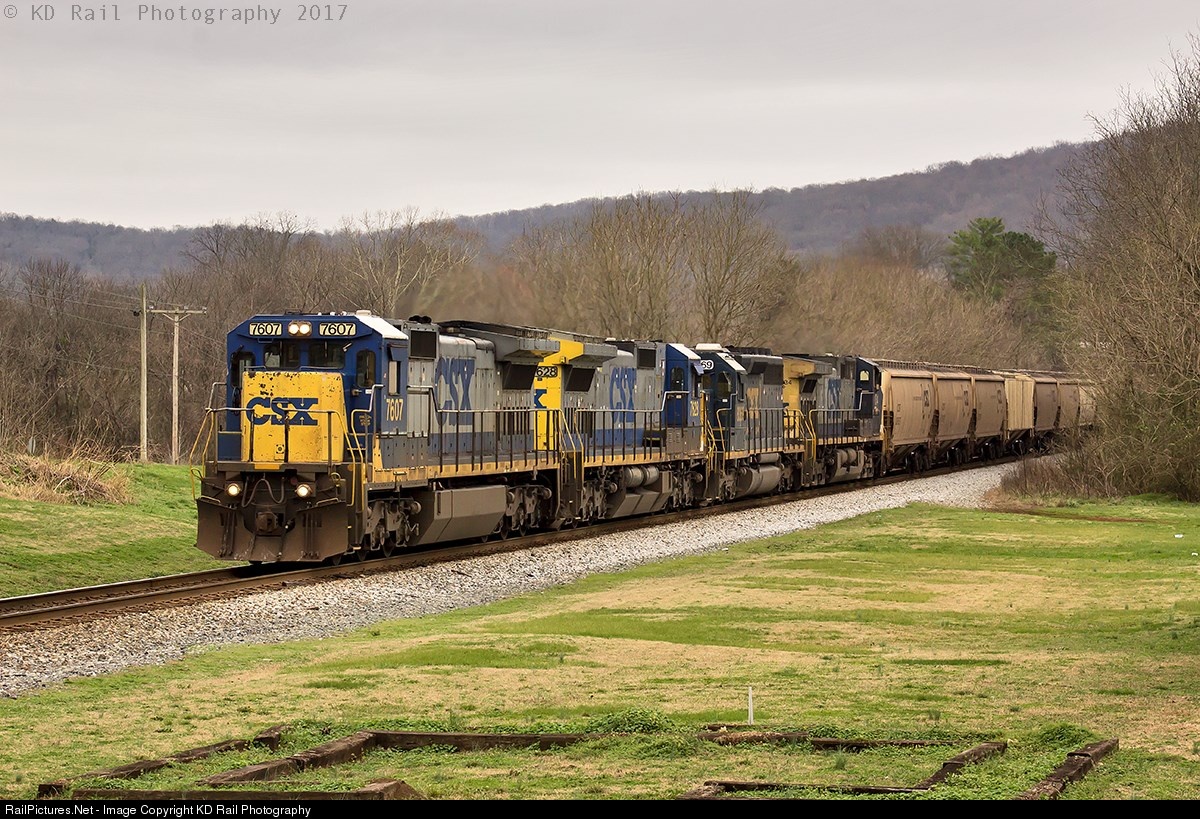 Cruising down the mountain in the town of Cowan, TN is the empty CSX V839-30 heading north with a pair of C40-8 (now retired) at the head. The crew will have to bring the empty grain train to a safe stop at the north end of Dechard, TN (MP J-80.6 NE. Dechard). The dispatcher will have to give out a couple of EC-1 form to go over with the crew of V839 due to some track work on the north side of Dechard, TN and Estill Spring, TN.