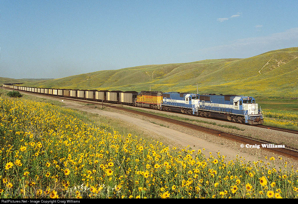 I made a trip in 2001 to shot the BNSF coal line east of Alliance. At this time mainly SD70MAC's were king of the region, but a few odd ball DC sets were mixed in. Here a loaded coal train has 3 DC's heading east towards Lincoln, NE. The train is east of Hyannis, and about 60 miles east of Alliance.The Sandhills Sub is a pretty cool line to shoot, especially in August when the Nebraska wildflowers are in full bloom.