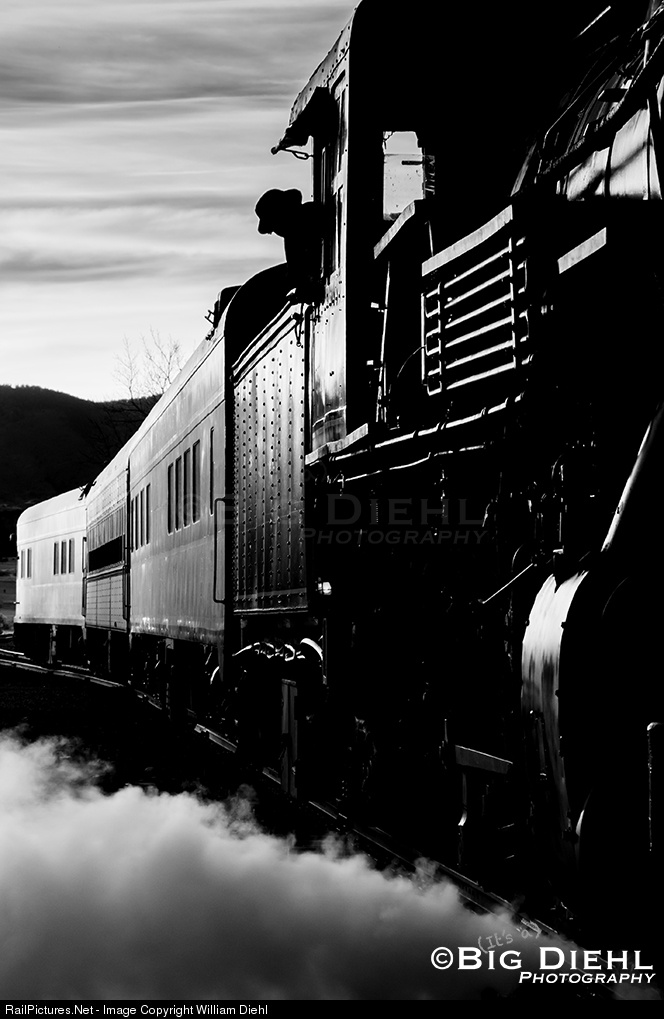 Acting on instructions from his conductor, Engineer Steven Butler (and at the time, Steam CMO) of the San Luis and Rio Grande, backs former Lake Superior and Ishpeming (and Grand Canyon) 18 off the La Veta Siding and onto the main after wedging in for a meet with a empty coal train (for storage) and unable to depart from the east end due to more stored cars. |