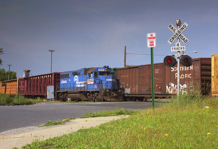| A Thursday throwback to the days when the Conrail Shared Assets Operations SA35 was still powered by Norfolk Southern's former Conrail GP38 motors. Here the SA35 switches Dinaso Lumber when they serviced the Southern Secondary twice a week and when there was still four tracks here. Now the line is serviced once a week by the SA31. |