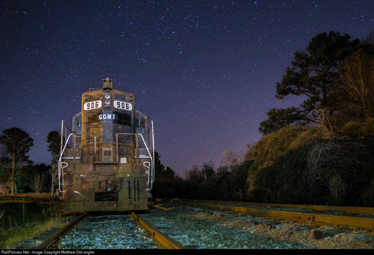 A cold clear night in Georgia brings out the stars beautifully in Monroe. A line of ex NW now GOMX GP9s sit coupled up to roughly five hopper cars.