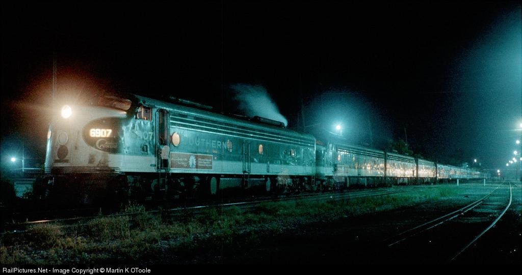 E8s still bear the Bi-centennial placards for signers of the Declaration of Independence. This is the last September for the Southern's operations. Amtrak cometh. Honeywell Pentax H1a;