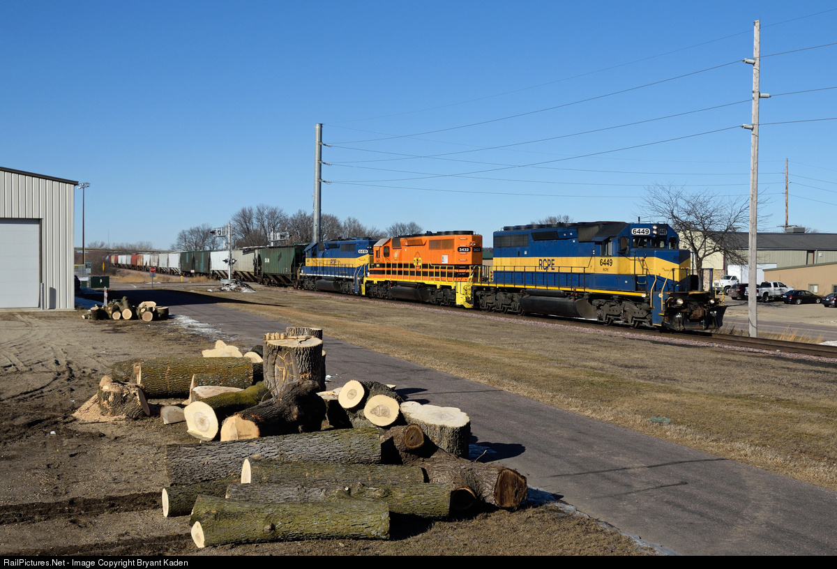 An eastbound train with RCPE power slips through New Ulm, passing alongside a bike trail and a public works building. They've clearly been doing some tree trimming in town. The extra elevation was provided by a large pile of snow, previously removed from city streets, which will probably be here until April if not May.