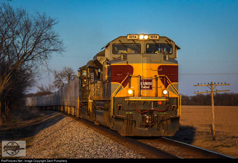 The Norfolk Southern's Delaware, Lackawanna and Western Railroad Heritage Locomotive leads RoadRailer NS Train 255 west at sunset nearing Rensselaer Siding on the NS Springfield-Hannibal District, and a meet with 122. This was my first look at the "Phoebe Snow", and it's quite a nice looking unit. Mark another NS Heritage Unit off the list, since this was the first time I'd laid eyes on the DL&W unit.