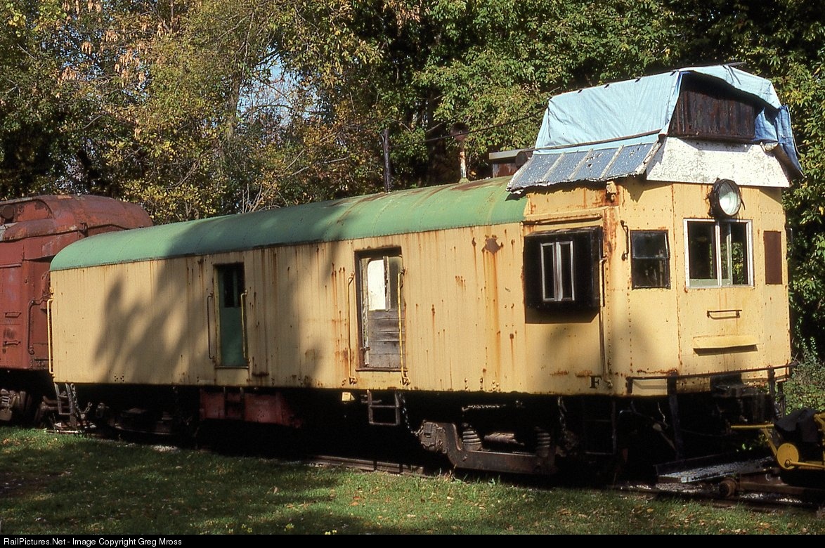 A McKeen railcar rests at the Kettle Moraine Scenic Railroad in North Lake, WI in October of 1992. The unit was difficult to photograph as it was surrounded by trees. Originally built in 1910 for the CGW, the rail car was unusual in that it really doesn't look like other McKeen cars. It was also shortened by the CGW before the museum got it. Fortunately, it was not scrapped and was sold to the Nevada State RR to supply parts for their own McKeen rail car.