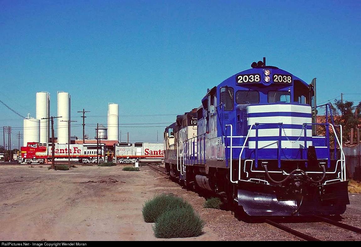 On a warm summer morning, SJVR's Hanford Job waits for the Santa Fe's 991 train in downtown Hanford, California. It will be a hot day, so the SJVR crew has fully engaged their air conditioning device.