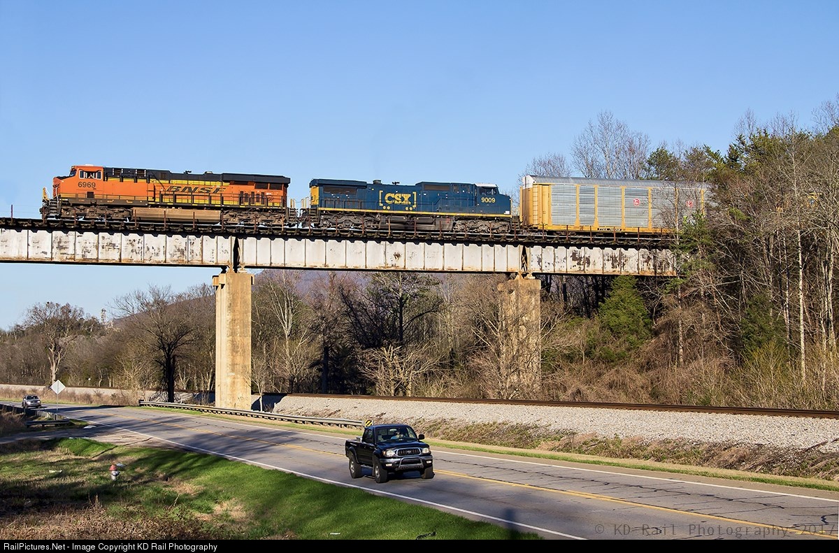 Dragging across the yard lead bridge that sit over U.S. Hwy 11, and the quite NS AGS North-End in Wildwood, GA (MP 0J2-144.7 Wildwood Lead) is CSX Q210-17 (Cayce,SC-Louisville,KY). The two lead motor is hard at work dragging 108 empties auto racks bound for the American Auto Works Loading Facility in Louisville, KY. This steel beam bridge is part of the Wuahatchie Yard lead, and was built in the late 60s early 70s to accommodate access for train traffic to the south end (North in CSX term) of Wuahatchie Yard.