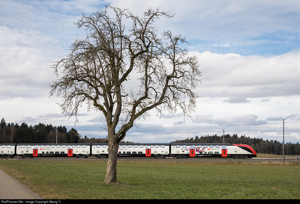 | Testrun of the first "Twindexx" double deck Intercity train RABDe 502 # 002 from Bombardier for the SBB. This is the 8 car/200 meter IC version with dining car, family and baggage compartments. The train circulated between Mellingen and Baden Oberstadt for measurements of parasitic currents. |